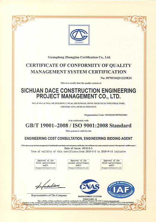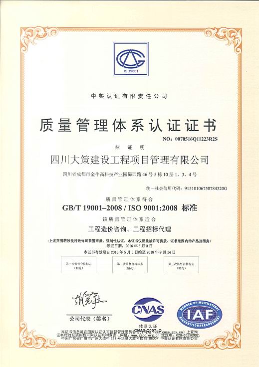 質(zhì)量管理體系認(rèn)證證書